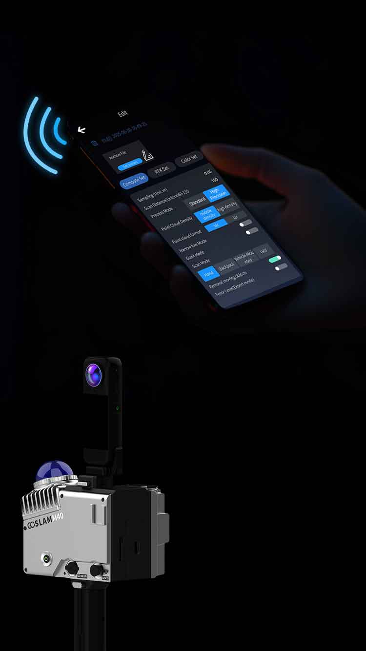 In the GoSLAM Manager app, high-precision post processing can be performed by the M40 host and supports 2mm resolution technology.